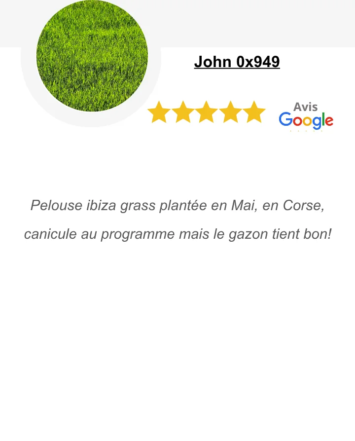 Le calcul des économies est basé sur la variété IBIZA en comparaison d'un gazon terrain sec du commerce (mélange avec une majorité de fétuques élevées) nécessitant 15mm d'eau /m² tous les deux jours en été dans le sud de la France.