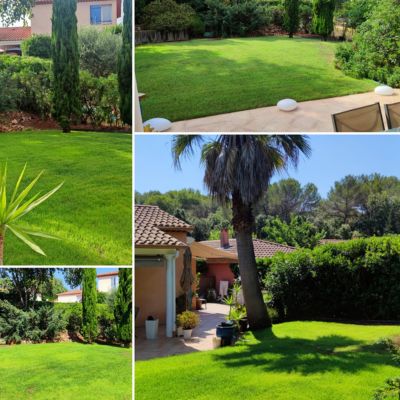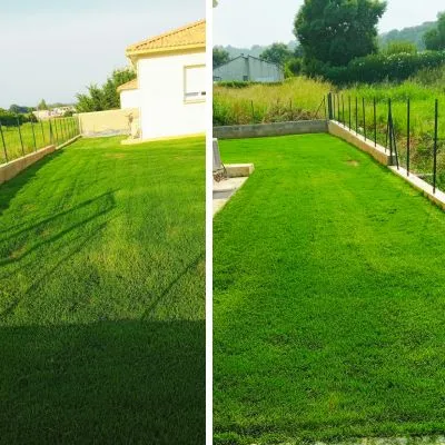 • Exclusivité, la dernière génération hybride Cynodon Dactylon, stérile, n'est pas invasif, ne produit pas de graines en installation d'une pelouse tondue.